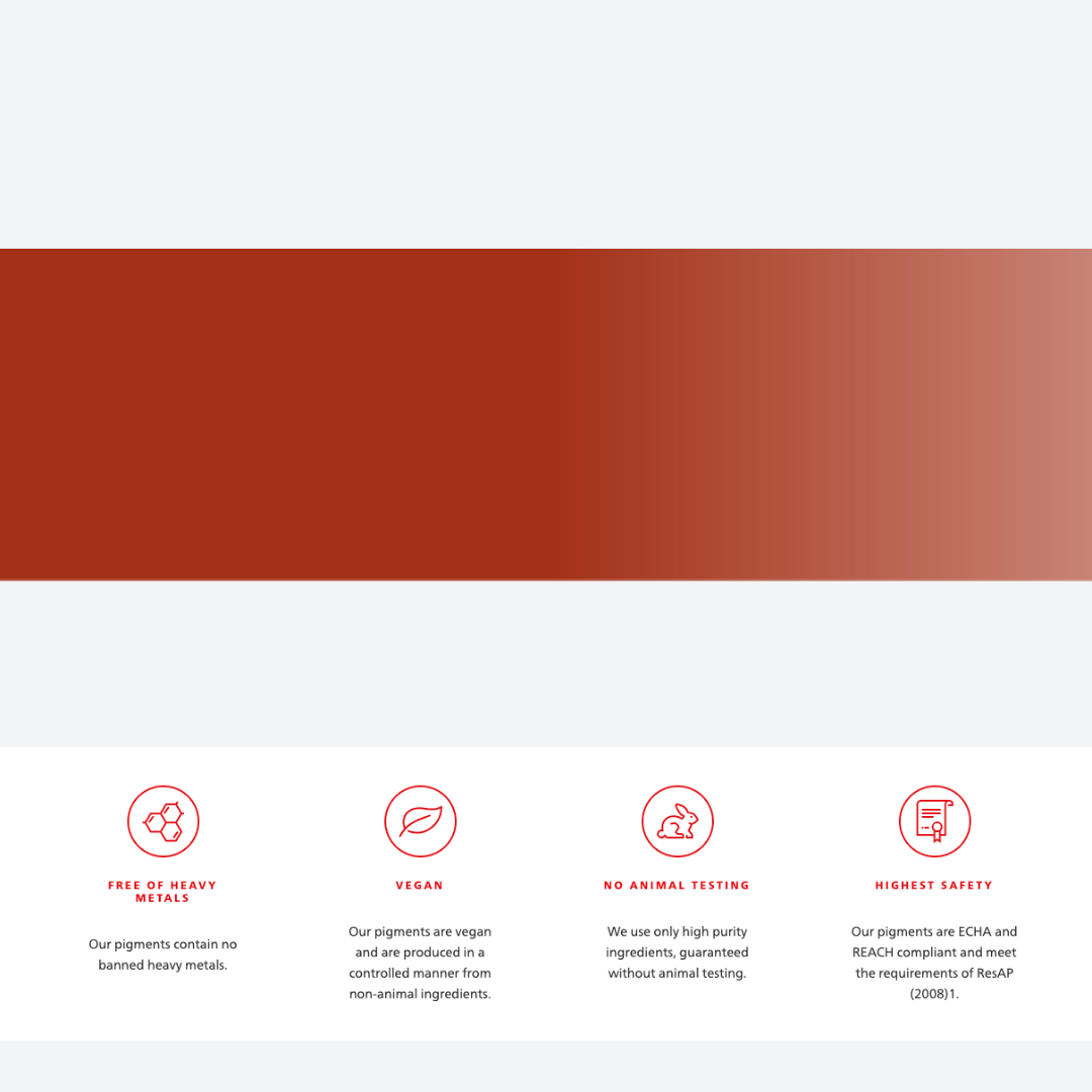 Questa tonalità terrosa con carattere terracotta costituisce un’eccellente base per i colori delle labbra ed è un additivo ideale per areola e colori mimetici.